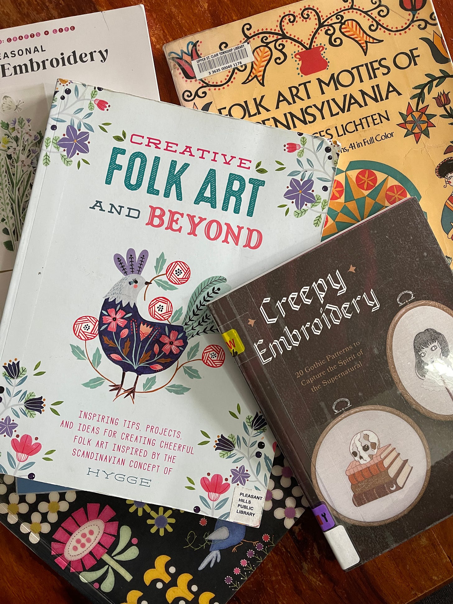 And this month, the things that are speaking to me? Folk art. Embroidery. Felt appliqué. And holy smokes did the library delivery with some amazing and inspiring books.